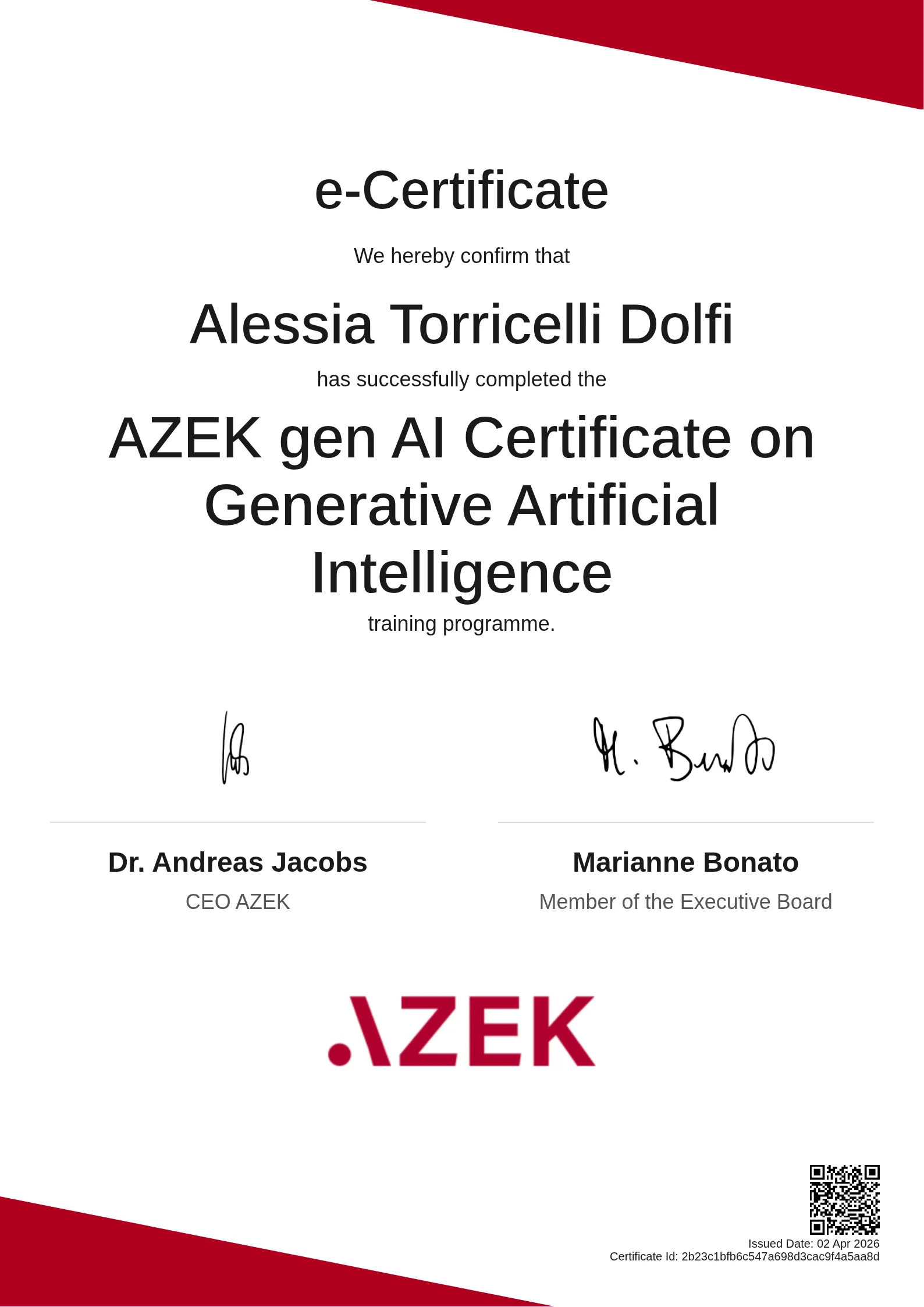 Alessia Torricelli Dolfi | AZEK gen AI Certificate on Generative Artificial Intelligence