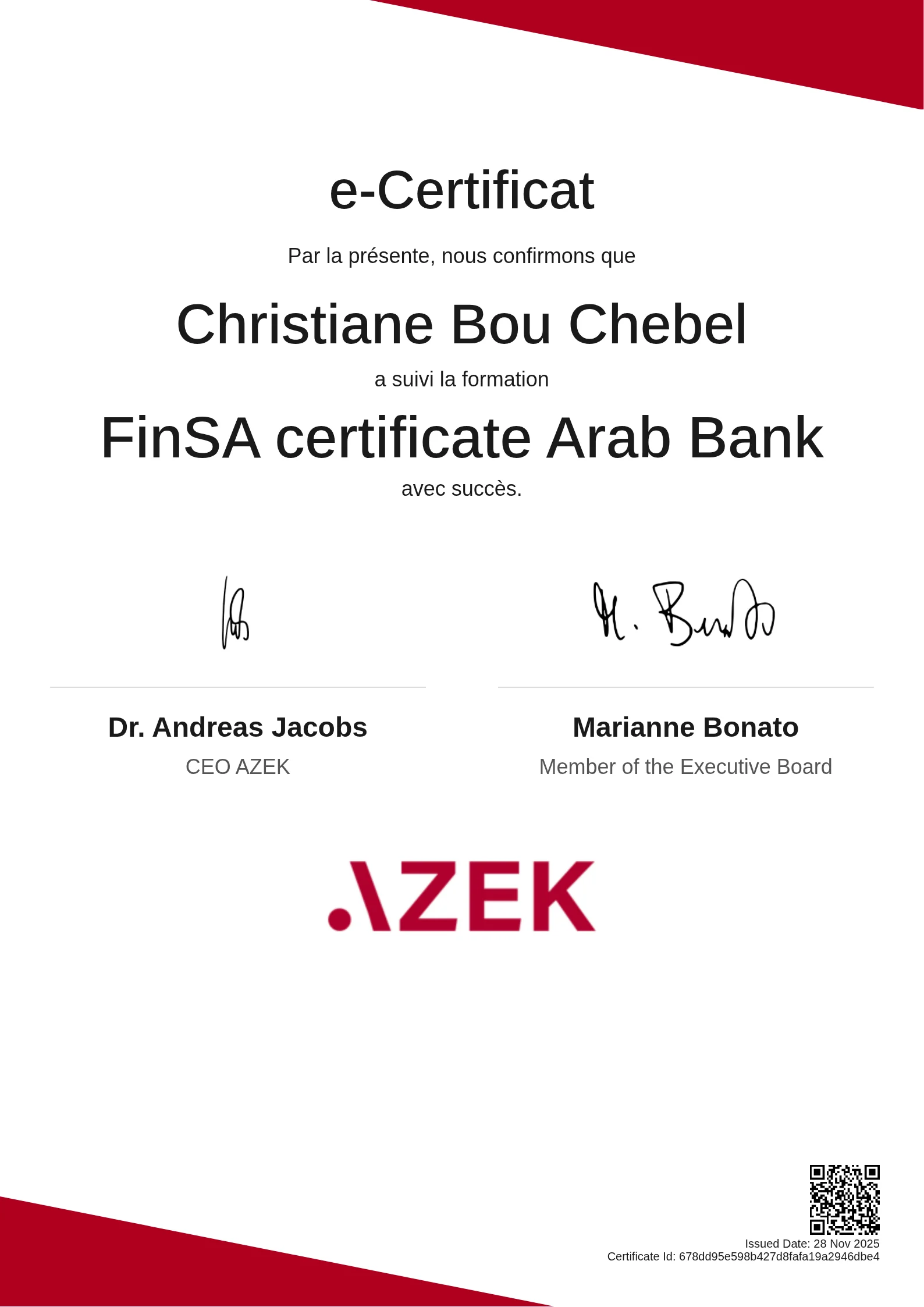 Christiane Bou Chebel | FinSA certificate Arab Bank