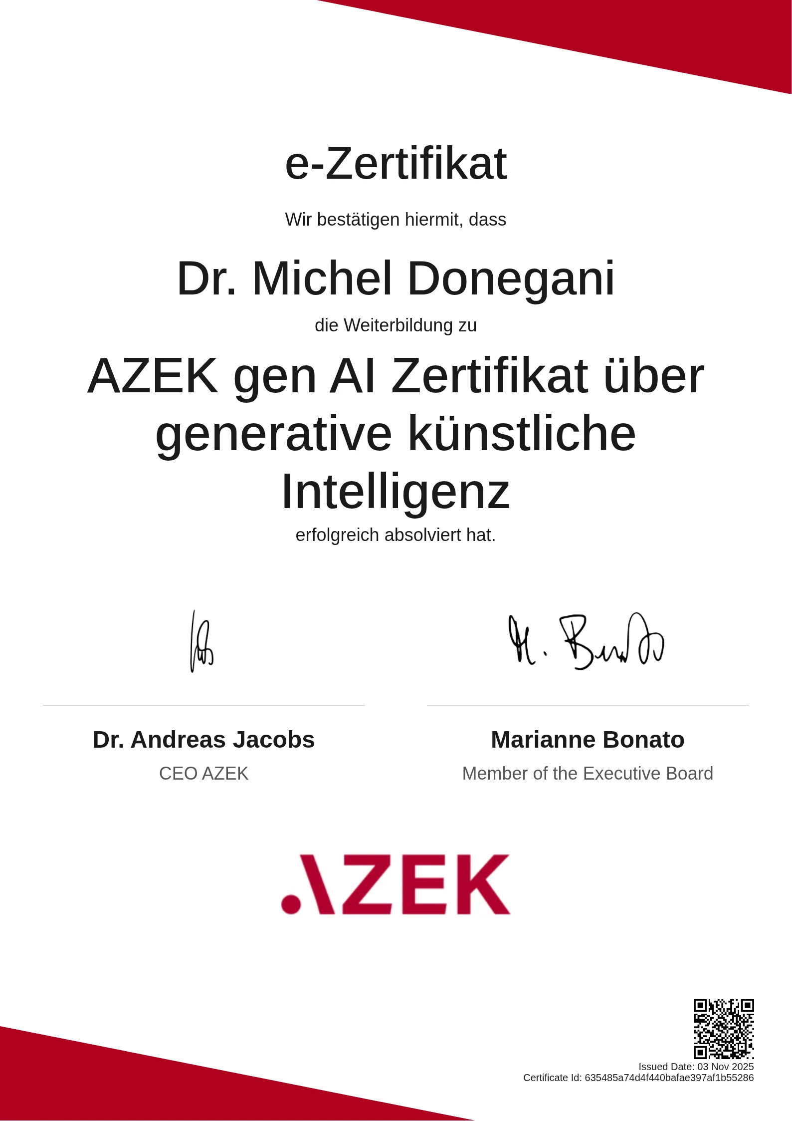 Dr. Michel Donegani | AZEK gen AI Zertifikat über generative künstliche Intelligenz