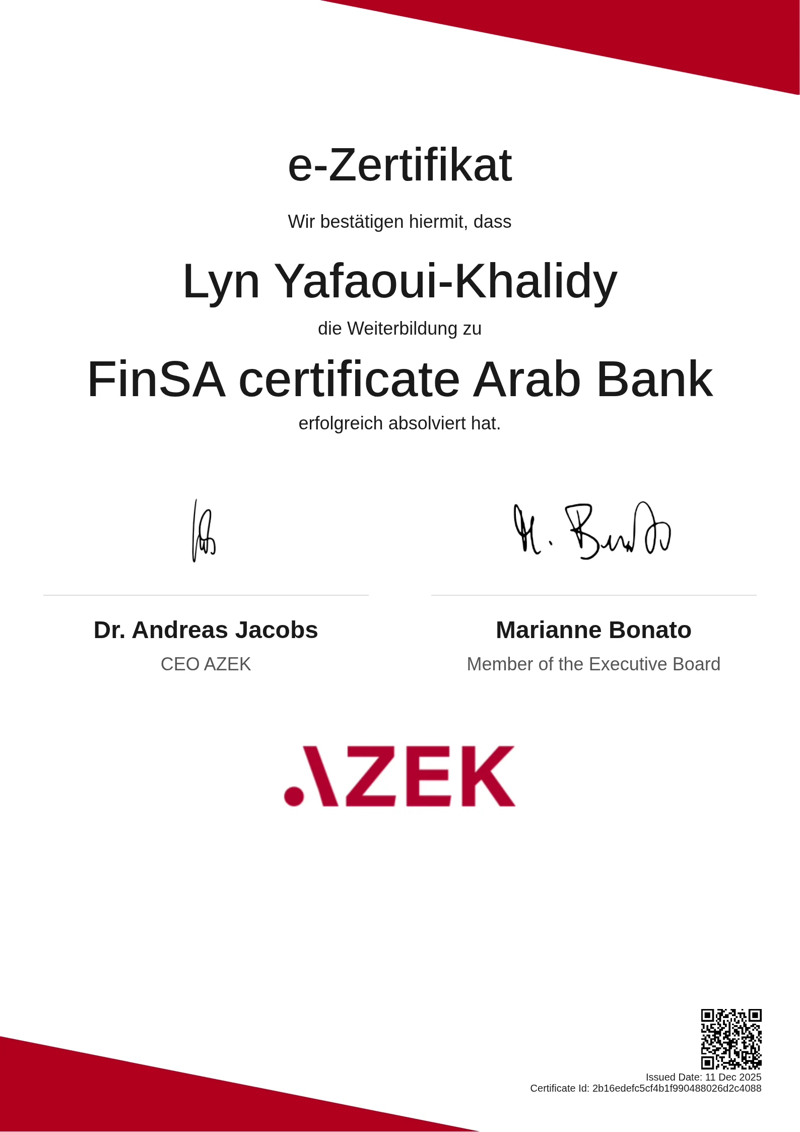 Lyn Yafaoui-Khalidy | FinSA certificate Arab Bank