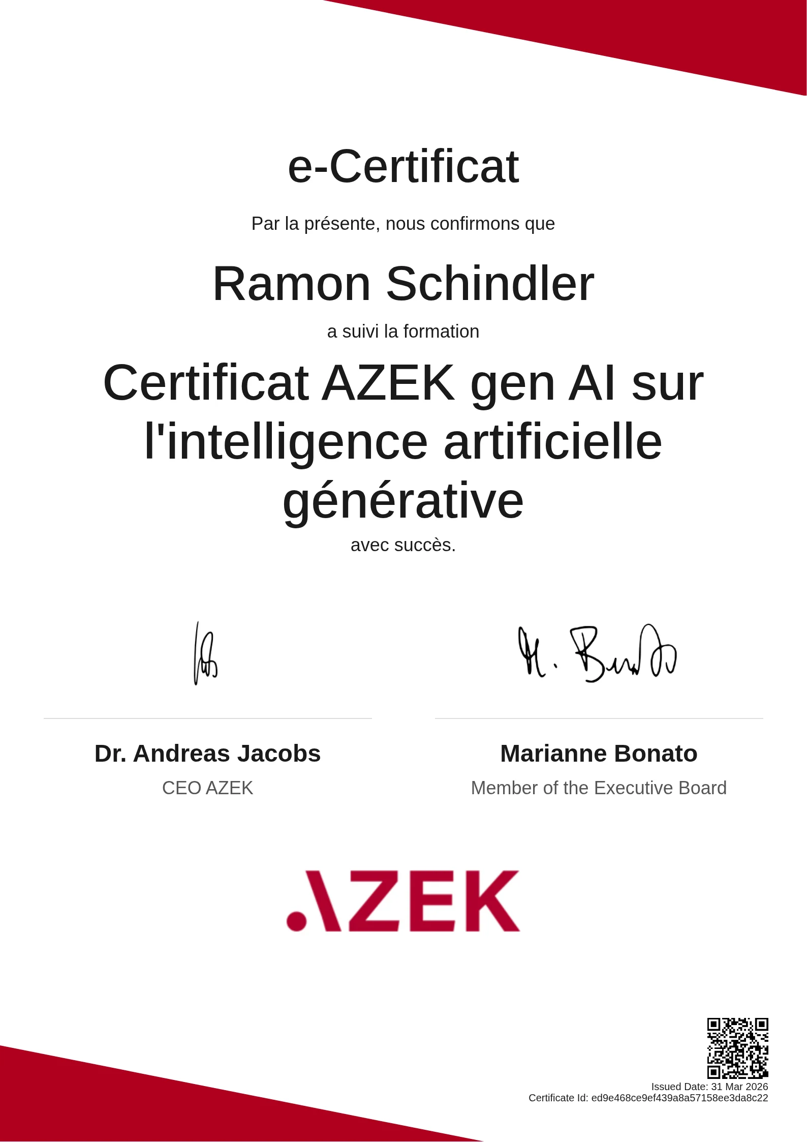 Ramon Schindler | Certificat AZEK gen AI sur l'intelligence artificielle générative