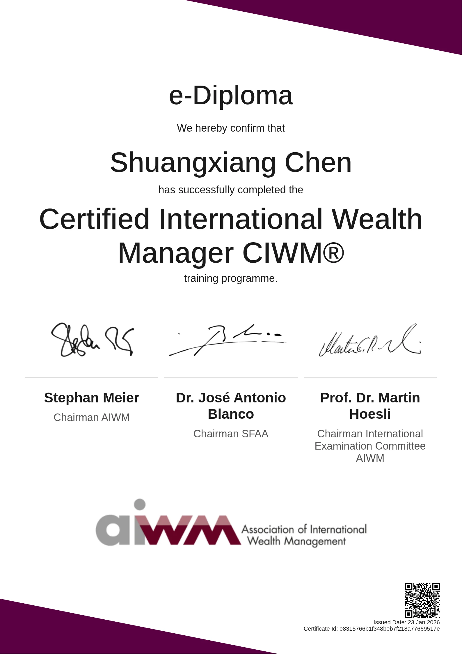 Shuangxiang Chen | Certified International Wealth Manager CIWM®