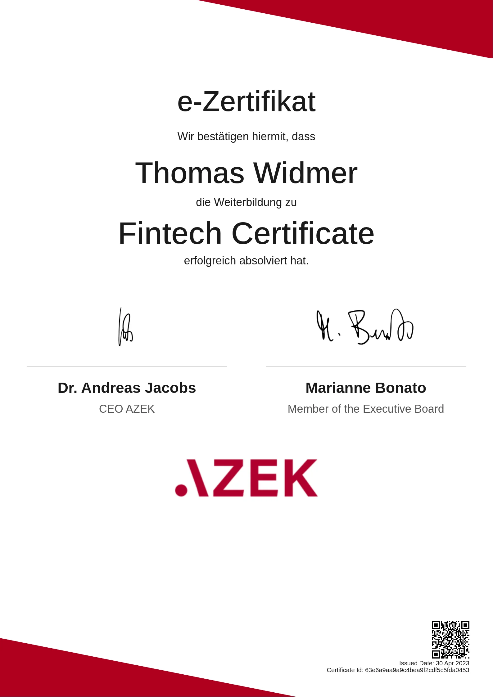 Thomas Widmer | Fintech Certificate